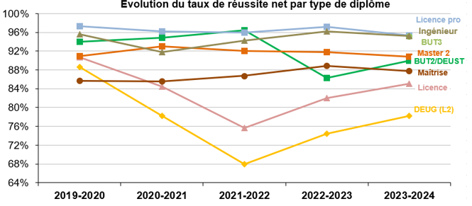 Il est de 93 % pour les diplômes professionnels (BUT 2, BUT 3, Licence Pro, Master-M2, Ingénieurs).