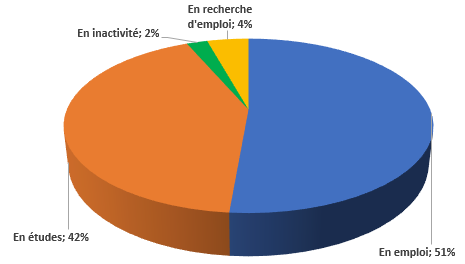 Situation des actifs (exclusion des étudiants en poursuite ou reprise d'études et des inactifs) :