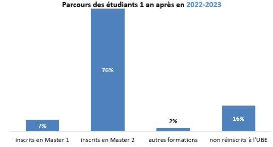 - 84 % poursuivent à l'UBE dont 76 % en Master 2.